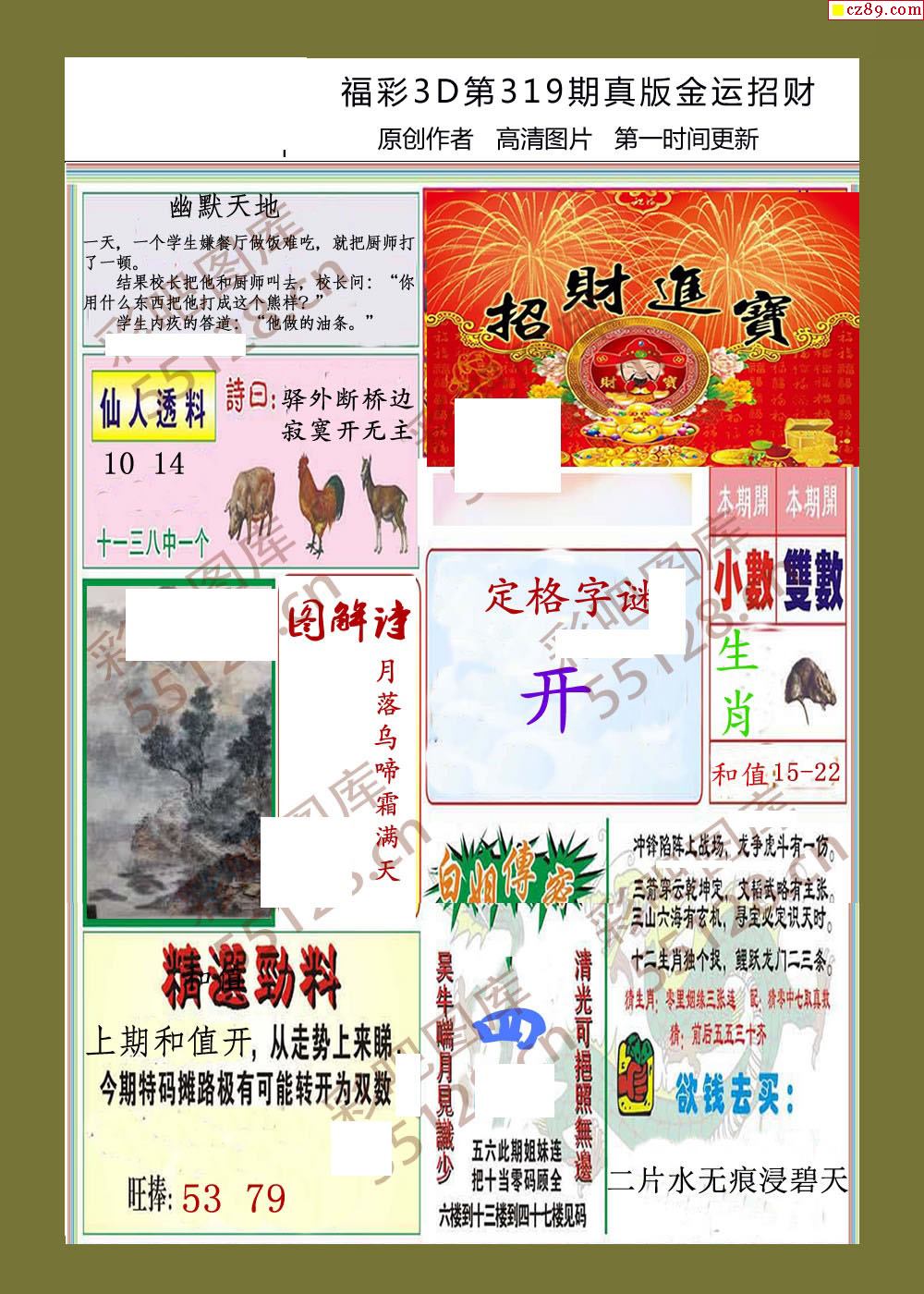 25年319期福彩3d金运招财画迷