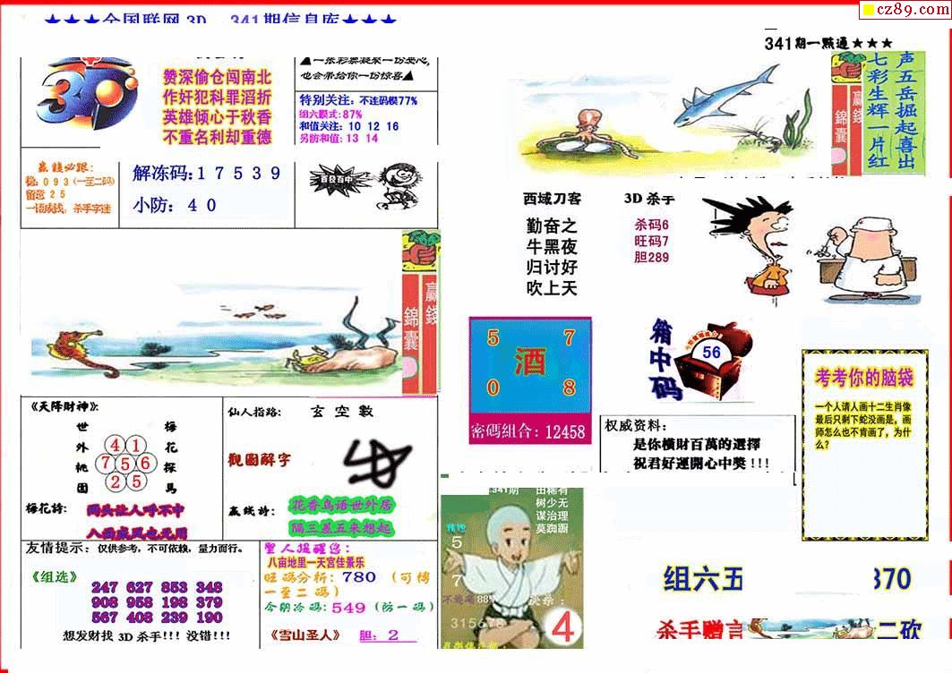 杀手+鑫马快报+字迷汇总25年341期3d图谜