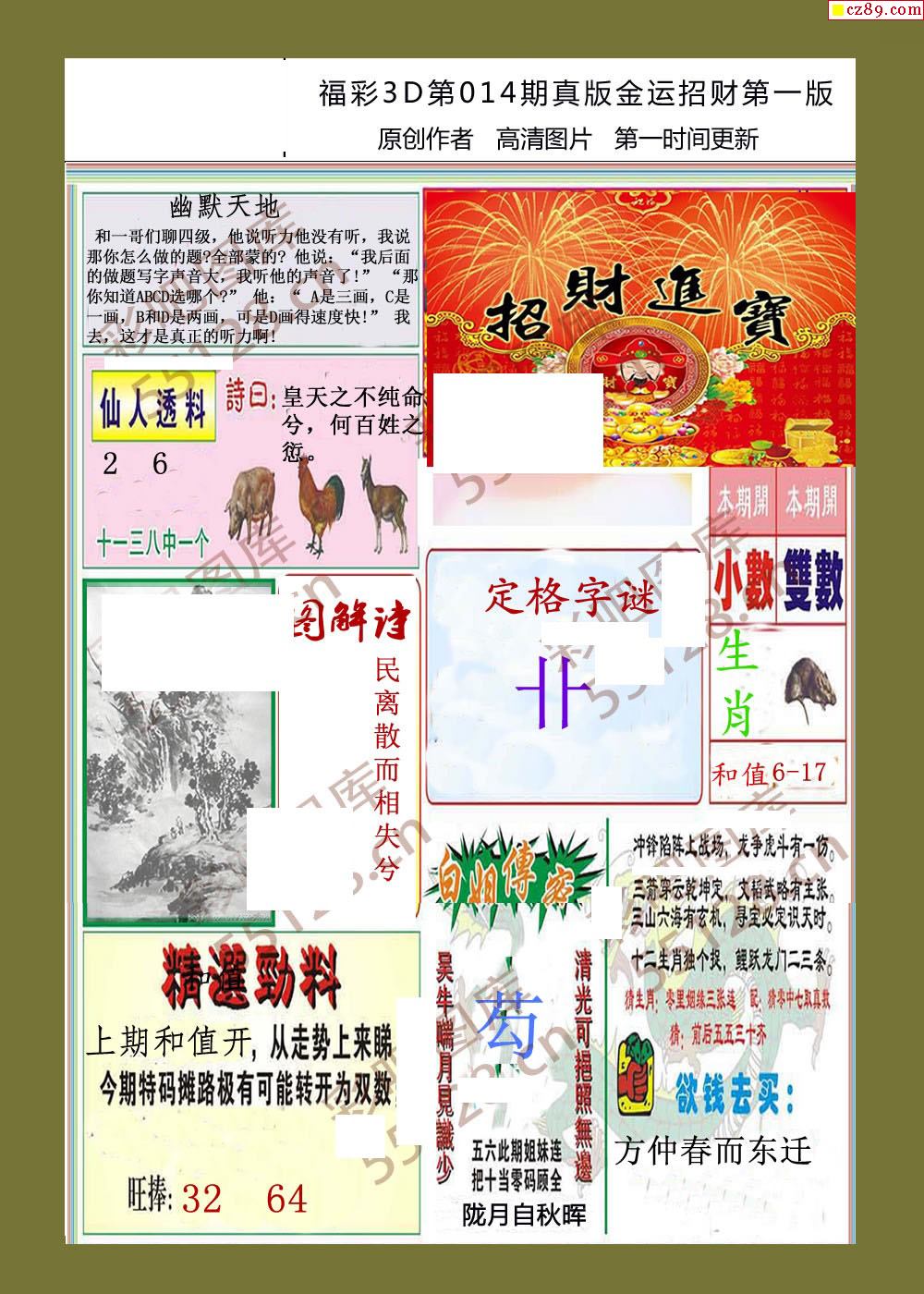 首页 > 福彩3D图谜 > 26年014期福彩3d金运招财画迷