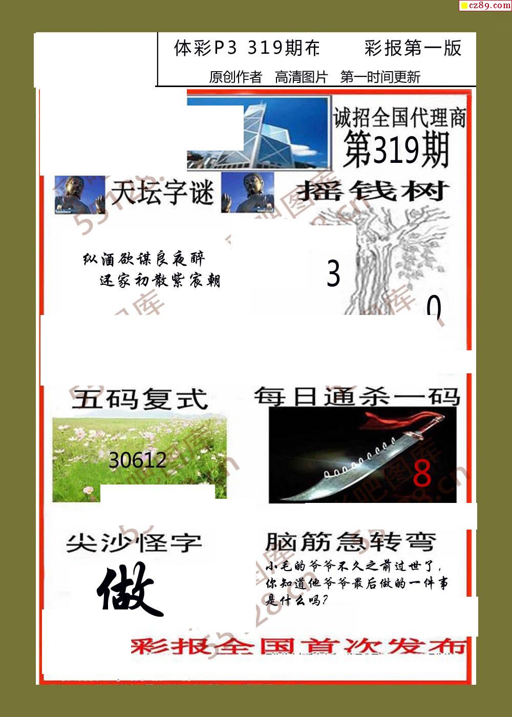 香岛彩报319期体彩p3图谜