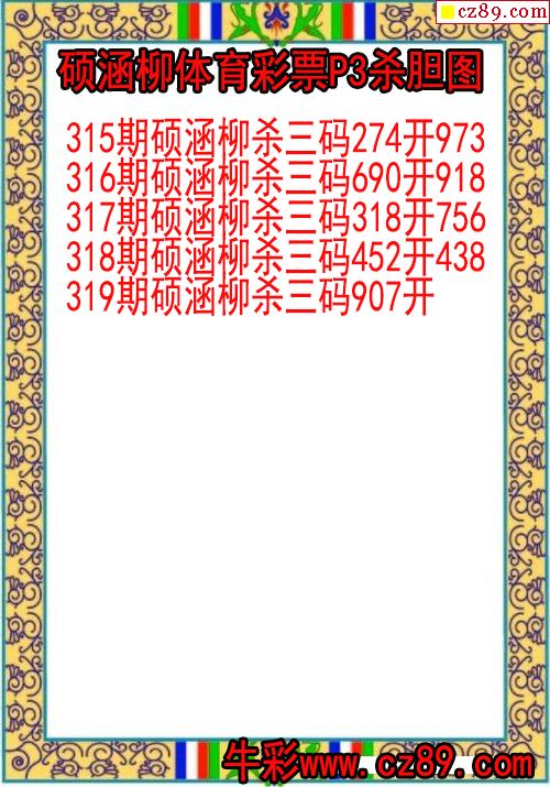 25年319期硕涵柳体育彩票P3杀胆图
