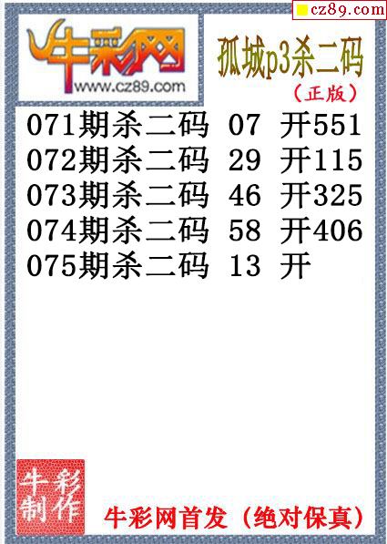 孤城杀码075期体彩P3图谜(原创)