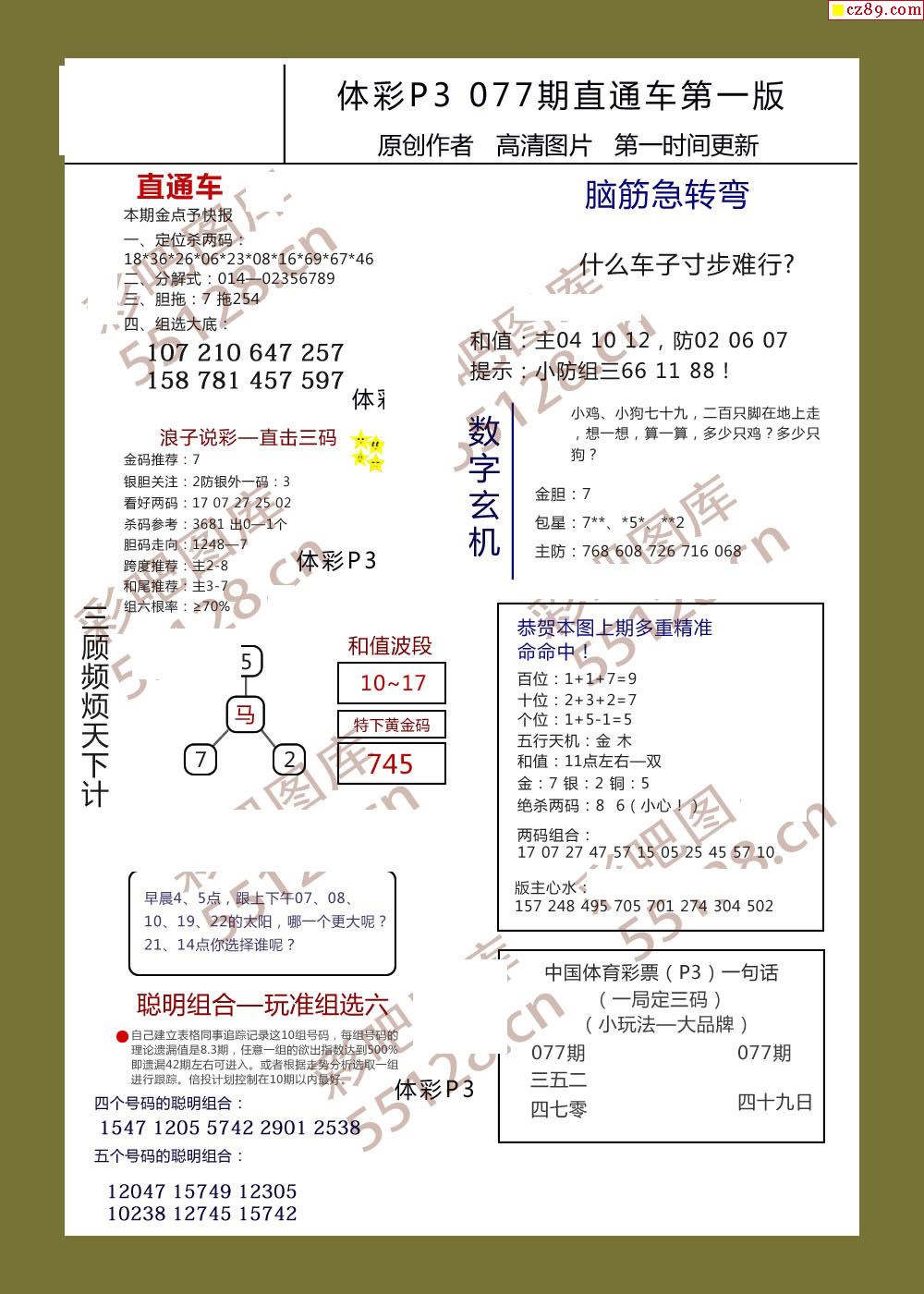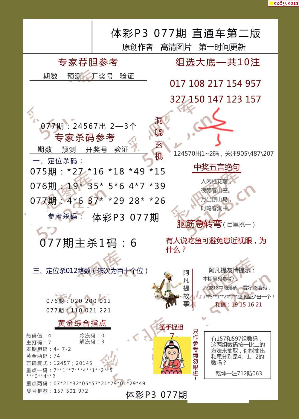 直通车AB版077期体彩p3图谜