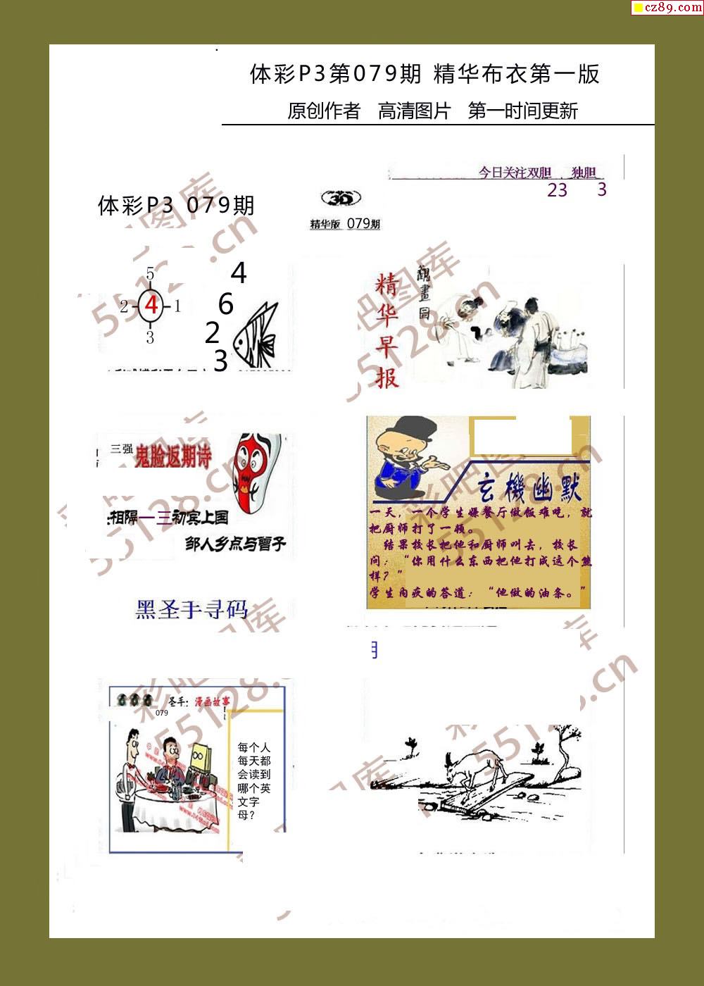 精华布衣彩报079期体彩p3图谜
