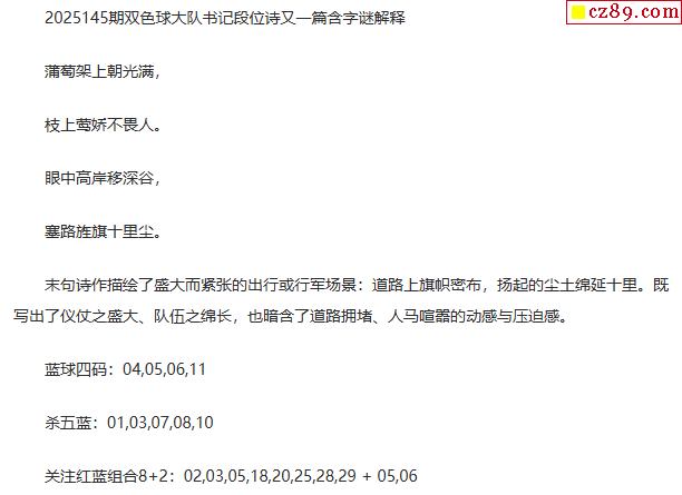 > 25年福彩双色球145期 大队书记段位诗另一篇