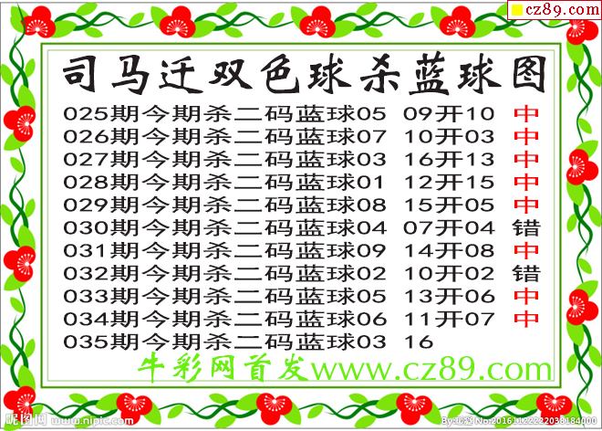 双色球035期 司马迁杀两码蓝球图谜 10中8-千禧3d试机号金码关注码杀码_今天3d试机号金码查询_排列三试机号金码